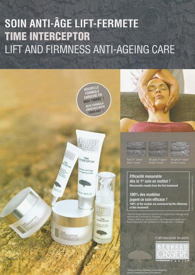 Parce qu'à partir de 35-50 ans votre peau a besoin de lutter contre la perte d'éclat, l'inconfort, les irrégularités, la perte de tonicité et de fermeté, et l'apparition des rides et des ridules, Bernard CASSIERE a développé la ligne TIME INTERCEPTOR.